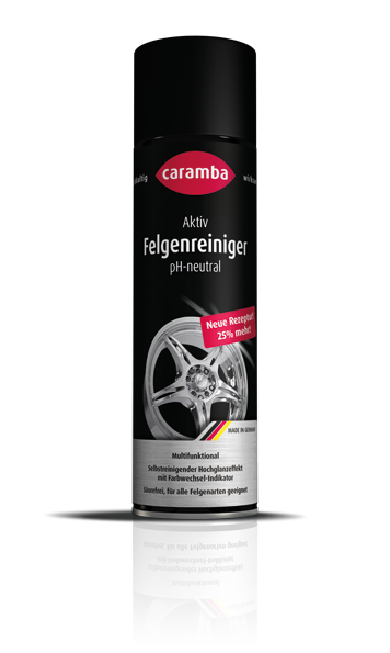 Caramba Active Rim Cleaner je sredstvo za čišćenje aluminijumskih, čeličnih, hromiranih i farbanih felni. Indikator “topljenja” prljavštine je menjanje boje, od tamno plave do crvene. Efikasno čišćenje teško dostupnih mesta. Uklanja i najekstremnije nečistoće kao što su: kočiona prašina, garež, zalepljena zimska so i ostala prljavština.